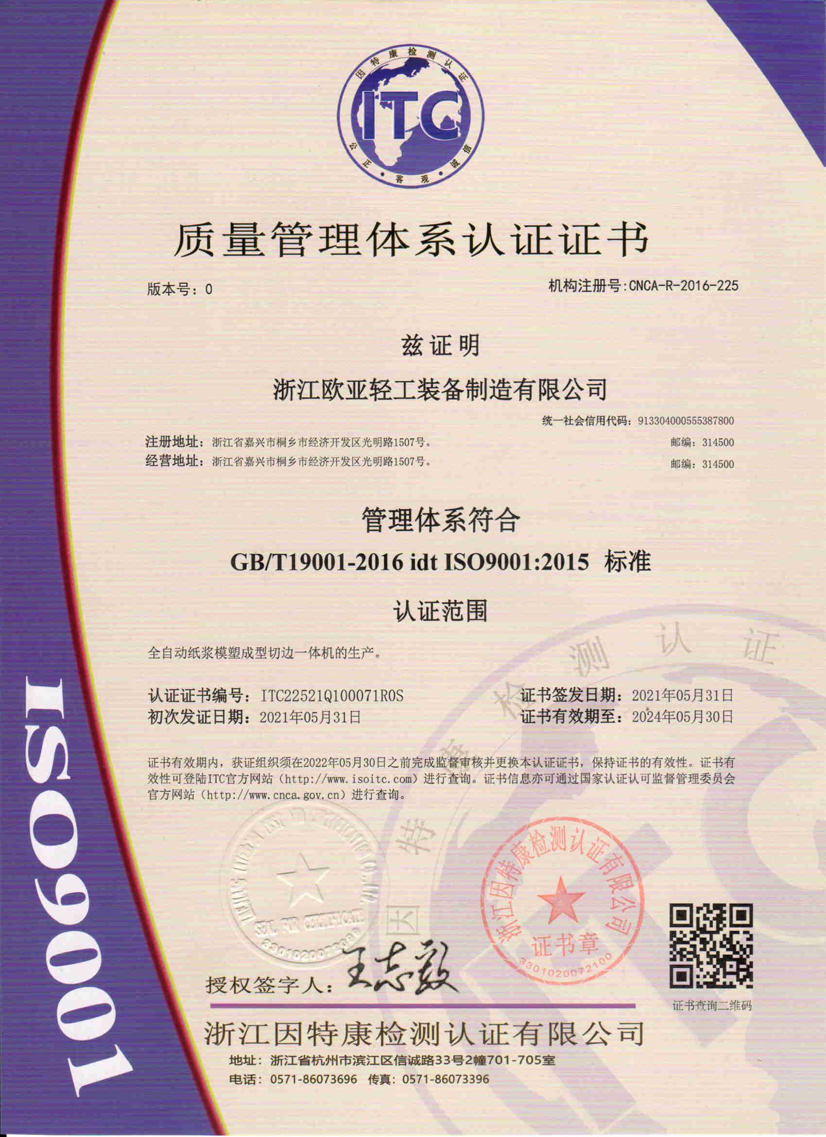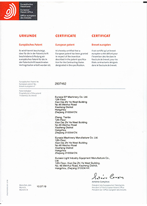 歐亞公司有多款設(shè)備的整機和關(guān)鍵部件已獲得一系列中國發(fā)明專利、美國發(fā)明專利、歐盟發(fā)明專利。歐亞公司是國家行業(yè)標(biāo)準(zhǔn)主要起草單位,率先在國內(nèi)同行中制定了植物纖維模塑餐具設(shè)備及高檔工業(yè)包裝設(shè)備的國家行業(yè)標(biāo)準(zhǔn),在行業(yè)內(nèi)具有領(lǐng)先優(yōu)勢。